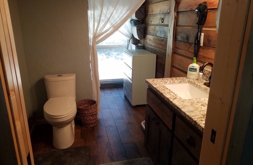 Escape to this welcoming studio in picturesque North Fork that features a comfy Murphy queen bed and a twin bed, perfect for a small group of guests. Enjoy the convenience and comfort of heating, AC, and a gas fireplace. A beautiful bathroom with a refreshing shower and hair dryer. Your stay here will be nothing short of phenomenal. Relax and enjoy the woods at this unique and tranquil getaway, view the mountains, gaze at the stars, and enjoy the sounds of the nearby creek. Kitchenette with gas cook top, microwave, and refrigerator. Property borders National Forest with nearby hiking and jeep trails. Fish or float the famous Salmon "River of No Return." Feel free to reach out to us during your stay - we're happy to suggest local spots to check out.