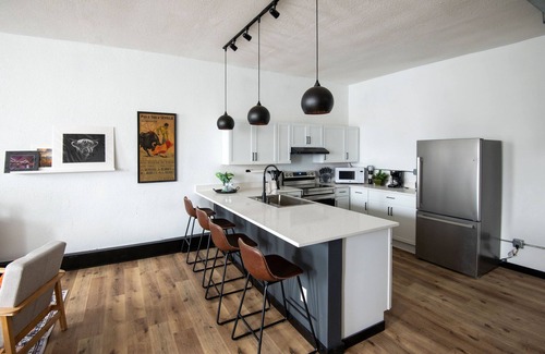 Welcome to our downtown Airbnb, a historic gem that has stood since 1890. We've crafted a space with vibrant touches, ensuring your stay is as delightful as the rich history right outside. Our space is an open concept studio, with a full kitchen, one queen bed, a pullout sofa bed that sleeps two, full bath, and full size washer and dryer. You will have to climb a flight of stairs to reach the apartment. As you explore the down town area just outside the BNB, you'll discover an array of fantastic restaurants, excellent shopping, and just 3 blocks from the UCM campus.