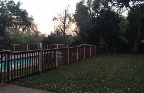 Studio apartment, King sized bed, kitchen, fireplace, outdoor pool, large yard and patio, carport, walking distance to Zilker park , restaurants, hike and bike trail, Lady Bird lake and Barton Springs !