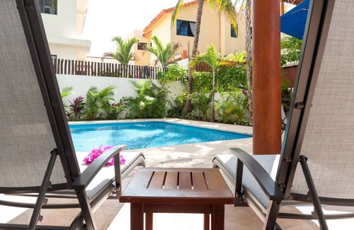 One of the highlights of this Puerto Morelos Vacation Rental unit is its access to the lovely shared pool, set in a spacious garden area. Relax by the pool or take a dip in the refreshing water, all within the lush, tropical surroundings shared with just three other apartments in the building.