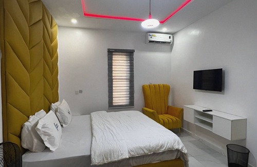Family friendly and cozy 2 bedroom fully serviced apartment in a well secured court in Lekki with a Swimming Pool, Wi-Fi, 24hrs electricity, free parking and so many other basic amenities. We also have a fully stocked mini bar to make living very comfortable for you our very special guest.