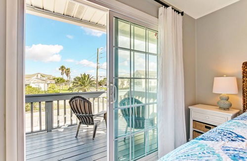 Both bedrooms are on the upstairs level. In the master, guests will enjoy a new king mattress and flat screen TV. Private balcony access can also be reached from the master bedroom where guests can enjoy the sound of waves crashing just across the street.