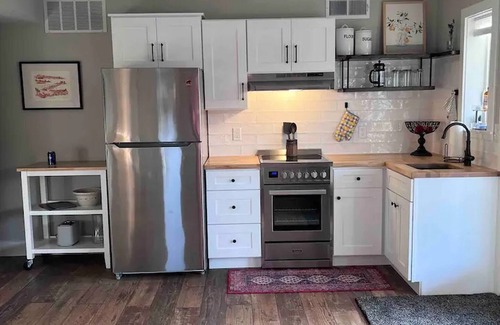 The entire apartment has been recently remodeled and very tastefully decorated to provide a homey and welcoming feel to the apartment. The kitchen features butcher block countertops, brand new stainless steel appliances including induction cooktop and single oven, and is fully stocked for all your basic cooking needs. The single bedroom is equipped with a queen bed, large closet, and chest of drawers. The living room couch pulls out for additional sleeping if needed. Brand new washer and dryer in the unit.