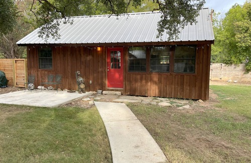 Cabin sits at the back of our 1 acre property and has a private patio with chimenea and BBQ grill. Fully stocked kitchen so you can eat all your meals at home, or venture out to our neighborhood Italian restaurant, Patrizi's, or local coffee shop, Civil Goat. Take a dip in the pool and play some beach volleyball while you are here. Lake Austin boat cruise or wakesurf excursions available.