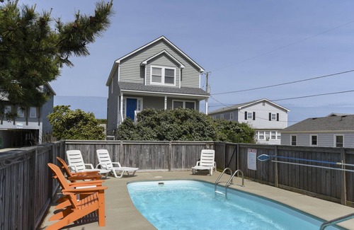 Experience this charming oceanfront paradise in South Nags Head! This inviting 4-bedroom home is perfect for families and friends seeking a relaxing getaway by the sea. Unwind in the 9 x 24 heated pool, soak in the hot tub while enjoying the refreshing ocean breeze, or take a leisurely stroll down your private walkway to the beach, complete with a dune-top deck for breathtaking views.