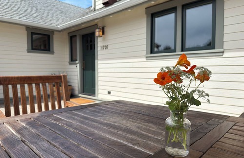 Step inside this recently renovated home to find detail upon detail of craftsmanship. Douglas Fir wainscotting, restored furniture from the Arts and Crafts movement, Turkish rugs, antique brass light fixtures and stained glass windows warm the home. There is a spacious dining room to entertain, a comfortable and cozy living room with ocean views, a large state of the art kitchen with ample seating and plenty of outdoor space for gathering. Located 10 min from the town of Elk.