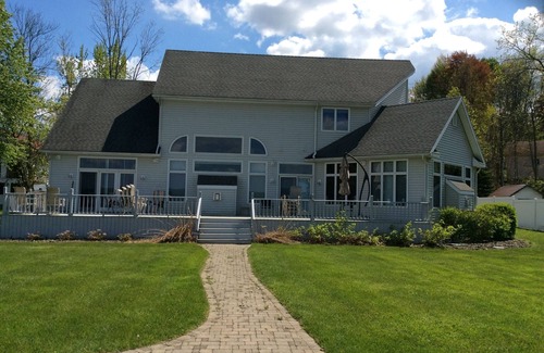 Additional deep cleaning after each guest including all handles and door knobs. Dates fill up fast so reserve your dates now! Fishermen and ladies, you'll love the variety and if you want a challenge to catch a Muskie. There are a few guides that will take you on a great charter. Duck hunters, you'll be amazed at the variety at the lake. Calendar open for up to 18 months in advance so plenty of room to book ahead. You will love this spacious home, deck and yard on 110 feet of private lakefront views from almost every room. It's the perfect place to relax and enjoy the tranquility and privacy looking over our quiet waterfront. Enjoy the tasteful furnishings with a flair from Nantucket. The Kitchen area is huge and beautiful with huge windows facing the lake. The kitchen is fully equipped with a gas convection oven/stove, microwave, dishwasher and bar that seats 4. We provide dishwasher detergent for your stay and dish liquid. If you like to be your own cook we provide blender, toaster oven, griddle, all dining ware, pots and pans and a few surprises for the kids if they're feeling creative. There is a dining table that seats 6 comfortably in the kitchen area and a nook with comfy wicker chairs and a fireplace. There is an additional Dining area off of the Great room that seats 8. Cross over to an expansive great room featuring a gas fireplace, windows facing the lake, a huge leather sectional that seats 8 and 2 cafe' tables for 2 each The large armoire has a smart TV, VCR, DVD and Wii station.. We have smart TV's and Roku is provided. I no longer have cable. The large dining area table off of the great room is also perfect for games and puzzles. There is a 1st floor laundry room for your use with detergent for your stay. There is also a half bath located on the first level by the laundry room. 1st Floor Master with California King and it's own door to the outside deck so you can wake up to the sun or fall asleep overlooking the lights around the lake. The master bathroom has a garden sized Jacuzzi tub and a walk in shower big enough for two next to a double vanity. There are extra air mattresses with all bedding upon request only.