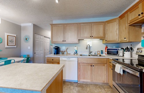 This riverfront escape has a cozy patio with a couple of chairs, offering a nice spot to take in the views while enjoying a cup of coffee. The living room boasts a comfortable sectional and a large Smart TV with cable. When it comes to entertainment, this retreat is like no other. Apart from the TV, you will have a collection of classic and new DVDs and board games to choose from. When it comes to meal prep, the kitchen has you covered with all major appliances, utensils, and cookware needed. It's also appointed with a dishwasher to clean everything up in the blink of an eye and a Keurig coffee maker.