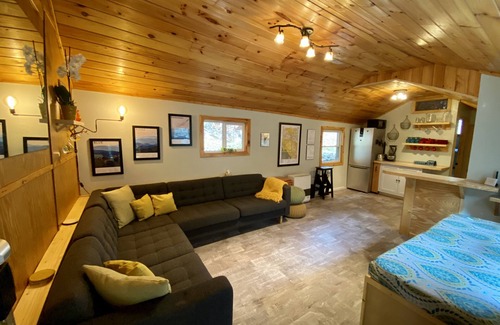 Creekside cabin- all-wheel drive recommended during extreme weather conditions. (one-lane dirt road) Located on a native brown trout stream, 3 minutes to downtown Boone, and ASU; minutes to local shopping, dining, and entertainment. This 500 sq. ft. tiny home is a 2/1 with lofted queen beds in each bedroom offering four people a comfortable stay. Fully equipped kitchen, gas grill, covered porch, Wi-Fi with high-speed internet, smart TV, and Chromecast. One lane, unmaintained road. Stairs to the house. Stairs to both beds. Come relax and unwind to the sound of a rushing creek just 5 miles from Appalachian Ski Mtn and 25 miles from Beech Ski Resort.