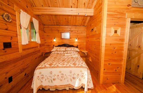 Each cottage sleeps 2 to 4 people and has a private bath, small fridge, microwave, coffee maker, AC/heat, and provided linens. Outside is a covered porch with rocking chairs, a fire pit, a charcoal grill, and a picnic table. The creek provides peace and relaxation for adults, and endless fun for children and dogs. Dogs are welcome with prior permission.