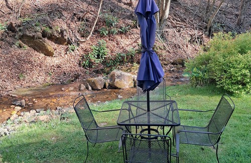 If you are looking to slow down and relax by flowing creek located in the beautiful Blueridge Mountains of North Carolina. Cozy and secluded yet convenient to West Jefferson. Nice creek with water falls along side of the drive in. Enjoy the fresh mountain air on the large deck with charcoal or gas grill with three outside tables. Creekside hideout is secluded, but just five minutes from the historical downtown of West Jefferson, NC. It is 2/10ths of a mile from New River State Park, Elk Shoals Access, where you can do activities such as fishing, tubing, and kayaking. This is a local swimming hole in the summer. In five minutes you can enjoy the town of West Jefferson, where you can stroll down the streets, shop at local shops, enjoy art galleries of local artists, enjoy great food and indulge in the local spirits in two breweries of Boone Docks, New River Brewery and the Wine Shoppe. You can watch cheese being made at the famous Ashe Cheese Factory and buy the goods at the shop across the street. This is located near our Parkway Theater which two movies are available. Creekside Hideaway is located 4.5 miles from the Blueridge Parkway where the views are amazing. We are located 26 miles from Boone, NC, home of Appalachian State University and Appalachian Ski Mountain where you can enjoy winter activities such as skiing, snow boarding. 47 miles from Beech Mountain Ski Resort where depending on weather there is an ice skating ring, skiing, etc. Grandfather Mountain is about 46 miles from the cabin.