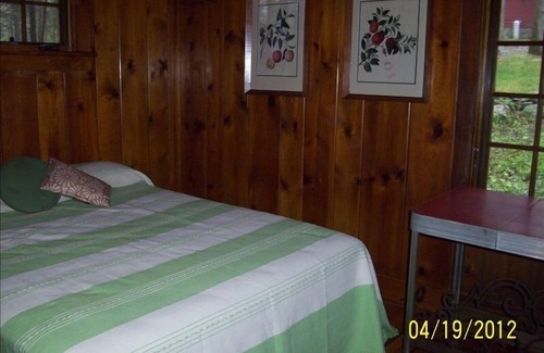This building is one of three rental properties at the Dwarfskill Preserve, which include a 4 BR Lodge, 2BR Cottage and 1Rm Cabin. The buildings are spaced around a large circle at the end of a 1/2 mile driveway. The Lodge faces the Dwarfskill Creek and its screen porch and deck cannot be seen from the other two buildings; the Cottage faces a meadow, similarly private. The Cabin sits between the other two buildings, at the beginning of the trail to the waterfall on the 575 acre property. The only other habitable structure on the property is the Caretaker's Barn, halfway up the driveway, which is not available for short-term rental.