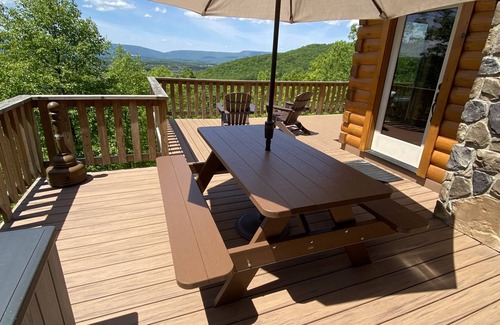 * NOTE: For added security, the property has a Ring Doorbell at the main entrance and floodlights mounted on the upper front corners of the home, all containing surveillance cameras. The only places we can see your movements are OUTSIDE in the front and front-sides of the cabin. There are NO cameras, listening devices, etc. anywhere INSIDE the cabin nor overlooking the back decks or hot tub. This is for our protection as well as yours! If you have any questions about this please call (240) 730-7072.