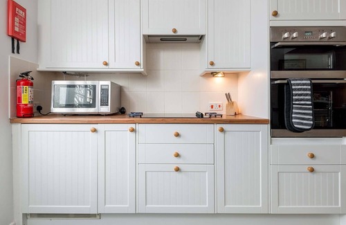 The accommodate is for up to 10 people, with a large, split level beamed sitting/dining room with wood burner, patio doors to rear garden, 50" TV with Sky package & DVD player. Comprehensively fitted kitchen with a ceramic hob & double oven, microwave, full height side by side fridge and separate freezer, dishwasher and washer drier.