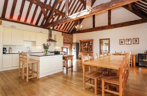 The living areas in this reverse-level property consist of a first-floor open-plan living space with kitchen, dining area and sitting area with woodburning stove. Appliances include an electric oven and hob, microwave, fridge, freezer, washing machine, tumble dryer, dishwasher, Smart TV, four TVs, and an iPod docking station. The bedrooms consist of two ground-floor super-kings (zip/links), one of which has an en-suite shower, a ground-floor king with en-suite bathroom, and a king with en-suite bathroom, serviced by a further ground-floor bathroom. Outside, there is an enclosed garden with lawn, patio and furniture, along with off-road parking for four cars. This is a pet-free, non-smoking property. WiFi, fuel, power, starter pack for woodburning stove, bed linen, and towels are all included in the rent. Highchair, travel cot and stairgate available on request. Enjoy a memorable stay in rural Cheshire at Cromwells Manor.
