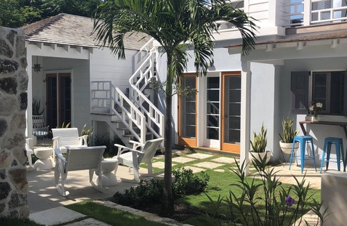 Crown Affair provides a quiet and secluded experience with the convenience of being in the heart of the historic village. Within an easy stroll of the property are boutique shops, multiple restaurant choices, and of course the world-famous beach. When not eating out, you can opt to hire a local chef or prepare meals in the well-appointed kitchen and on the outdoor charcoal grill. The house offers choices to sit at a large family dining table inside or to enjoy a candle-lit evening outdoors in the covered dining pavillion. At the house there are many places to relax: head to the upper level sundeck, outdoor dining and covered lounge for ocean breezes, relax in your own spacious garden around the pool, while away time on the shaded porches and outdoor living area.