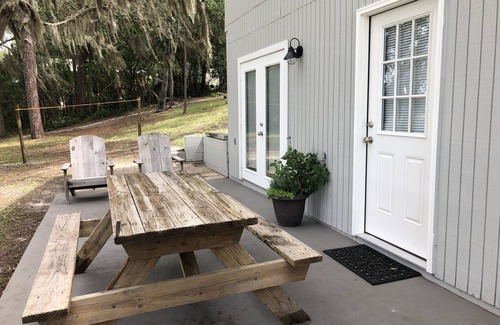 Come stay a while at our serene two story lakefront cottage surrounded by beautiful oak trees, backyard patio, outdoor eating and grill. Enjoy amazing sunsets as you sit on the back patio of our Lake house rental or stick your toes in the white sandy beach and refreshing water. Be sure to take advantage of the opportunities to swim, fish, go boating, water sports and don't forget to simply relax. Located just 25 miles from Gainesville, Florida, 56 miles from Saint Augustine, Florida, and 53 miles Jacksonville, FL.