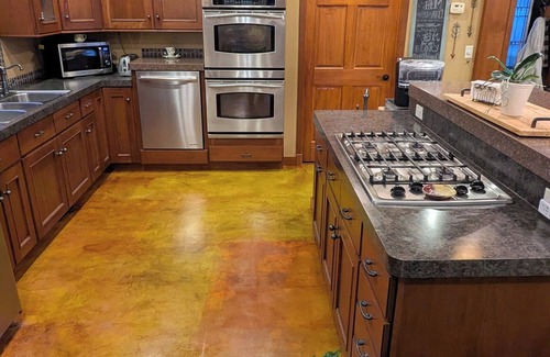 Gorgeous Gourmet Cherry Kitchen, fully equipped, gas grill and deck right outside the lakefront door. Dine outside under the covered deck overlooking the lake or dine in...still overlooking the lake!