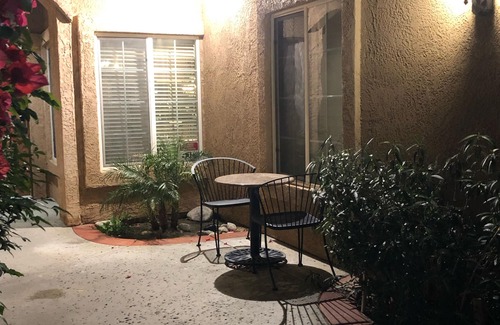 Cozy attached casita in a quiet neighborhood but minutes away from the 10 Fwy and shopping. Centrally located between Palm Springs and Indio and close to all desert cities. This is a clean and newer 320sq. ft. one bedroom casita with it's own entrance and no entrance to the main house. Includes - brand new mini fridge w/freezer; Keurig coffee maker; flat panel TV; Free Netflix; WiFi. Parking is right in front of the guest room.