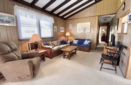 Cute 3 bedroom seashore cottage is located within walking distance to beach and shopping. Living room with TV and ceiling fan. Kitchen and dining area. Bedroom #1 has set of twins, ceiling fan and TV. Bedroom 2 has set of twins, ceiling fan and TV. Bedroom 3 has 1 queen with a powder room, ceiling fan, tv and entrance to deck. There is a screened porch to enjoy warm summer evenings