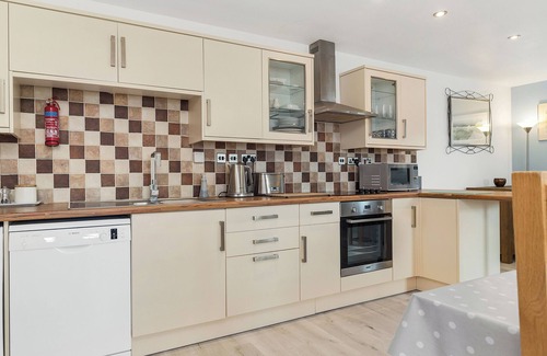 Bathroom: Bath With Shower Over, Toilet. Oil central heating, electricity, bed linen, towels and Wi-Fi included. Sitting-out area with garden furniture. Bike store. Private parking for 1 car. No smoking. Please note: Sorry, no children under 18 years old.. A spacious, contemporary, beautifully presented holiday cottage, which sleeps 2 or 3 adults with a king-size bed with mattress topper and a single bed in the large L-shaped bedroom. USB ports are by the bedside cabinets.