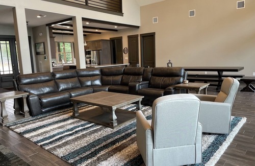 Discover the splendor of Cypress Cove Pointe, a lakeside retreat in the serene surroundings of Milam, TX on the shores of Toledo Bend Lake. This newly constructed 6-bedroom masterpiece offers an unforgettable experience for those seeking a harmonious blend of tranquility and luxury. This exquisite lake house offers the ultimate getaway for families, friends or groups in search of a remarkable fusion of comfort and recreation. Inside, you'll find five thoughtfully designed bedrooms, ensuring there's ample space for everyone to unwind. Two of these are luxurious master bedrooms, each featuring a king-size bed for ultimate relaxation. One of the gems inside the house, however, is the expansive bunk room, thoughtfully designed with two queen-size bunk beds, perfect for younger guests to enjoy their own space away. The bunk room also includes a large couch, smart TV with Dish network lineup and premium movie channels and a foosball table for friendly competition.