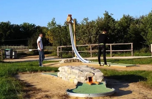 Details: Playground for children : open access Sports animations : on site (extra charge): Archery, Golf Disc, Mini-Golf, Adventure course, Treasure hunt, Mountain biking... Pets allowed : 10€/ animal/ stay. Several animals allowed (small). Deposit (in supplement) : 500 Baby chair : free - on request Charges (surcharge) : 25 Horse riding : equestrian center on site (courses, walks, internships ...). Extra charge. Final cleaning fee : from 25€ to 90€/ accommodation according to the typology Bedding : included in the rental Towels : For rent: 8€ for 2 towels Crib : free - on request Mini golf : yes (additional) Number of stars bowling Breakfast : 8.40€ for children and 11.90€ for adults - to be paid on site Ping Pong : yes Indoor swimming pool : indoor heated to 27° open all year round + outdoor lagoon, ecological outdoor water point, unheated (open in summer) Possibility of bike rental : yes (read the domain) Hiking Restaurant : Snack/bar and traditional restaurant. Takeout service. Game room : Billiards, table football and ping-pong, free access arcade. Tourist tax (surcharge) : to be paid on the spot at the current rate Number of bedrooms : 4 Number of pieces : 5 Number of bathroom : 1 Surface (m²) : 40 Terrace