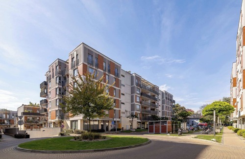 This modern and elegant building is located in a quiet and friendly neighborhood full of greenery, making it the perfect place to relax for those who are looking for an intimate atmosphere, yet want quick access to numerous tourist attractions. The nearest grocery store is just a minute's walk from the property, ensuring that you can quickly and conveniently stock up on the products you need. Parents traveling with little ones can find two children's play spaces within a 3-5 minute walk, and in about a quarter of an hour you can reach the charming market square with its beautiful architecture or walk to the extensive park. In 1-2 minutes you can walk to four nearby restaurants serving dishes from a variety of places around the world. It takes about 5-12 minutes to get to the airport, railway station, shopping mall, tennis court and bowling alley. Just a 10-minute walk from the property is an indoor arena that hosts concerts and sporting events. Those who enjoy relaxing by the water can head to the surrounding pond located an 8-minute walk away for beautiful views. Motorized guests here have a parking space in an underground garage. There are also bicycle racks at the building.