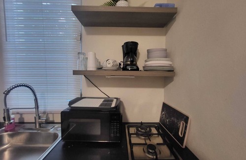 New! Close to the stunning beaches: Puerto Nuevo Beach, La Esperanza, Mar Chiquita, Los Tubos. This unique place has a style all its own with a perfect location. Near to the highway 22, Mini Market, Spas, restaurants. At minutes to the attractions such as Charco azul, Ojo de agua, Roca Norte climbing gym. Is the perfect place for a getaway, or to work. The Apto. have free one parking space inside (if you come with more cars, you need to find parking outside), also feasures 2 rooms, full equipped kitchen, living room, bathroom, A/C, TV w/Netflix, Wi-Fi...And Now w/Power Generator!