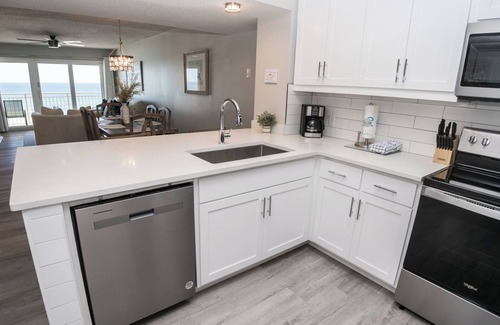 Treat yourself to the best of both worlds with Unit D506, a beautifully renovated 2-bedroom, 2-bathroom deluxe-floor plan that offers 1,200 sq. ft. of upgraded beachfront living—all at the standard rate. Thoughtfully designed to accommodate up to six guests, this fully furnished condo is your perfect beach escape.
