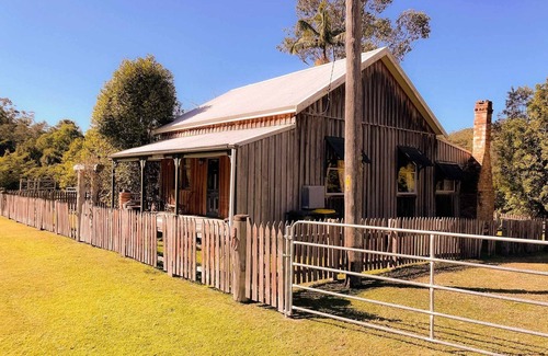 Dael's Mill is a captivating retreat with a rich history, originally situated at 'Shipley' in Wollombi before being carefully relocated by bullock wagon to its current location. The cabin embodies a deliberate preservation of its period charm, offering guests an immersive experience in rustic nostalgia from a bygone era. Surrounded by enchanting gardens, Dael's Mill boasts an exquisite Magnolia, a stunning Chinese Elm, and a majestic Jacaranda tree adorned with a plethora of elk and stag horns.