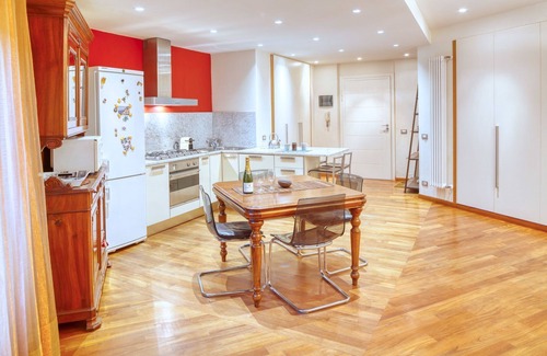 The apartment, measuring approximately 120 square meters, is suitable for large families or group of friends.
