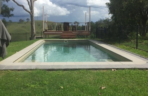 There is a swimming pool area that you can stroll to with a great deck to take in the views over the property.