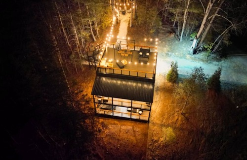 Dark Skies cabin boasts the largest rooftop deck in the Red River Gorge Area! Perfect for sunsets, star gazing and family gatherings! The first level is an inviting open layout with a gourmet kitchen and living space complete with a fireplace and bathroom. Unique spiral stairs lead you to the lower level with two queen bedrooms, laundry and a full bathroom. Outside space abounds with the lower level covered deck, seating area and hot tub.