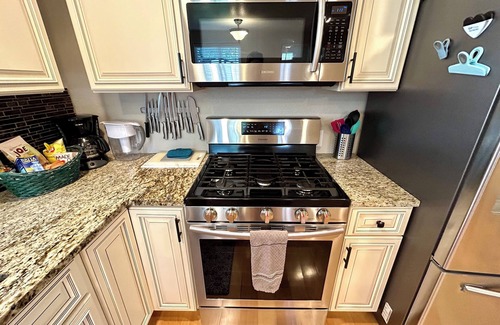 Welcome to your home away from home! Charming & stylish brick 2 bed 1 bath duplex on a peaceful, tree-lined street, one of the best blocks in West Highlands. Our rental offers the perfect mix of urban convenience and residential tranquility. Laminate hardwood floors are perfectly coupled with fresh furnishings and an updated fully-equipped eat-in kitchen. In this well kept clean modern house you will find a remodeled full bathroom with fresh white linens, FAST Free Wi-fi and workspace with desk, Central A/C and Heat with on demand hot water. Rent price is the only cost to our guests all utilities and services to keep house running and in order are paid by owner. The primary bedroom has plush king mattress with fresh crisp cotton white linens and a walk in closet, you can unwind with a smart tv in room. The secondary bedroom has a hybrid plush queen sized bed with crisp white linens, walk in closet space and view of the yard. The fully fenced shared yard features a covered patio with plenty of seating and table, flower garden, raspberry lined fence and you'll love to grill in the back patio and enjoy the Colorado Skies. Take advantage of the shared detached 2-car garage for parking and/or storing all of your adventure gear. Just moments from Tennyson Street, Sloans Lake, Highlands, Downton Denver. Walking distance from over 15 of some of the cities best restaurants/cafes, farmers market May through October, parks, neighborhood rec-center, cute local shops and night life. Easy access to major highways, I-70 will take you to Colorado Mountains for skiing. Enjoy the Bike paths near by. This place is really in the heart of it all! The perfect home base to explore Denver and for travelers who want to experience the city like a local.