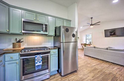 Access quiet lakeside days at this cozy, modern, 1-bedroom, 1-bathroom cabin situated right on Grand Lake O’ the Cherokees. This remodeled Eucha vacation rental delivers relaxation and adventure — perfect for a memorable couple’s retreat or family getaway. Cook a meal in the well-equipped kitchen, cozy up by the Smart TV, and step out on the spacious deck. Then, take to the water by boat, explore Grand Lake State Park, and grab a bite at a local eatery. Your lakefront escape awaits!