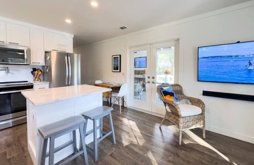 "Knot in Kansas" Cottage is a hidden gem, located on a quiet, secluded dead end street, affording plenty of privacy, yet still close to the beach, Camp Helen State Park and all the action on 30A. You will be a 6-minute walk to the Inlet Beach public beach access where you can experience saltwater activities on the Gulf and freshwater activities on Lake Powell (when crossing the boardwalk over the dunes there are several sets of stairs). If you prefer to avoid stairs you can easily walk to another Inlet Beach beach access close to the home within 8 minutes. As you cruise the area you’ll see beach cottages mixed with modern homes in this old-meets-new beach neighborhood.