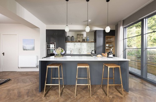 With relaxation being at the forefront of the home’s design repertoire, guests can wander down to the unspoiled grass paddock to enjoy a G&T in the sunshine, and for rainy afternoons there’s a cinema snug complete with sink-in seating, a flat screen tv and more of those exceptional countryside views.