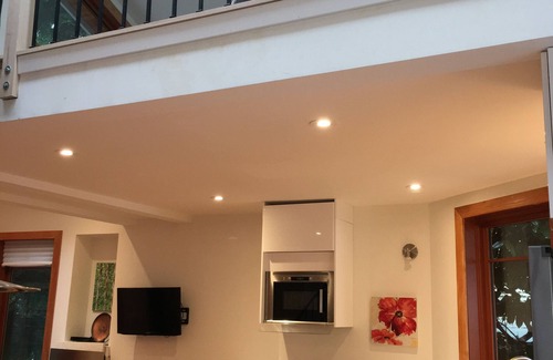 25 mins from downtown Vancouver, Deep Cove Village is a beautiful touristy neighbourhood at the foot of Mt Seymour (skiing) with trails, beach and kayaking. Our new cottage with loft bedroom is steps from the Baden Powell Trail, Quarry Rock, Deep Cove Canoe & Kayak Shop, bistros, coffee shops, Panorama Park, Deep Cove Theatre & Arts & Cultural Centre. Our suite is a brand new above ground property in a peaceful and quiet creekside setting w/ water and forest views. The loft bedroom has views of Deep Cove's harbour amongst the trees. The second bedroom/den looks onto the deck and creekside. The living, kitchen and dining area has dual views of the garden and view to the marina with boats and kayaking. You have both a deck and a bluestone garden patio to enjoy in the spring/summer. The bathroom has a large shower with rainshower head and heated floors. You have access to two kayaks as well. In addition to TV and WiFi we can supply board games as well :). Architecturally designed, tastefully furnished.