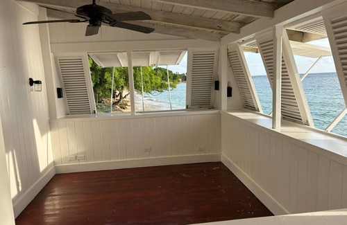 Annabelles is a Traditional Barjan Beach House with 3 Double Bedrooms and 2 Bathrooms. The open plan living area provides unsurpassed views of the Carribbean Sea, which is your Back Garden. There are a number of outdoor : a 60 foot long covered verrandah for peaceful afternoons and evenings. A huge deck with sunbeds and outdoor dining. A plunge pool point blank to the sea to enjoy sunsets and a large platform on the front of the house. The property is Quiet, secluded and functional with a first class house team to take care of you. The house has been a professional rental for some fifteen years now during which time we have accumulated a fantastic bunch of regulars who wouldn’t stay anywhere else. For those looking for marble and Aircon this isn’t the house for you, Annabelle’s is a traditional beach house cooled by the sea breezes and ideal for those looking for a hideaway and a truly authentic carribean experience.