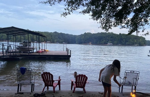 Open floor plan overlooking deep water and wide channel of Lake Hartwell. Three porches with lake views. Walk down the paved path to your own private beach, jump off the dock, and tie up your own boat or rent one. Use the kayaks or floats. Tugaloo State Park is only a mile away. Wide-open living room and kitchen. Great terrace level with large rec room. Three bedrooms and three baths. Two king-sized beds with hotel bedding and a bunk room that sleeps 6! Electronic deadbolts make access safe and convenient. This is the perfect place to get away and enjoy lake life with a family or two or a girls' getaway. 45 min from Clemson, <2 hrs from ALT and CLT. 1hr from Greenville, Helen, Unicoi, Anna Ruby Falls, and Talulah Gorge for great hiking!