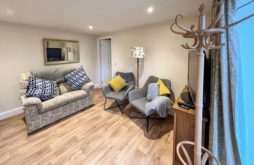 Shower Room: Cubicle Shower, Heated Towel Rail, Toilet. Electric central heating, electricity, bed linen, towels and Wi-Fi included. Travel cot and highchair. Welcome pack.. Enclosed lawned garden with patio and garden furniture. Private parking for 1 car. No smoking. Please note: There is a step down to bedroom 2.. The Snug at Delamere House is a modern annexe looking out onto its own private enclosed garden, bursting with colours in the spring and summer when the flowers bloom. There is a patio with a seating area so that you can enjoy the sunshine during your stay. The property set all on the ground floor, with designated off road parking on the driveway. Enter through the double glass doors which open in from the garden, bathing the living room in light. The living space is open planned, with a compact kitchen, a drop-leaf dining table as well as comfortable seating. There is a master double bedroom leading off the living room, and from the kitchen there is a hallway leading to the shower room and a twin bedroom. This property is the perfect choice for couples as well as families.