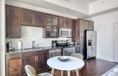 Thoughtfully designed with bespoke finishes, modern furnishings, and a fully equipped kitchen, you’ll enjoy that “I’m home” feeling with this Blueground apartment. Whether you’re lounging in your beautiful living room streaming the latest and greatest entertainment on the smart TV or premium wireless speaker, or getting some well-earned rest on the superior quality mattress with luxury linens, you’ll fall in love with everything this Downtown Austin apartment has to offer. This apartment also offers in-apartment laundry.