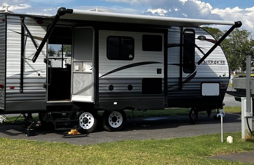 Delightful RV with the option to be placed in any local campground chosen by the guest. Bedroom with comfortable queen bed/tv and living space full bed/ tv and full kitchen. All campground amenities available.