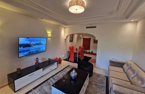 The place is close to everything, 5 minutes from the famous Jamaa El Fna place and 5 minutes from Gueliz city center. The area is mainly populated by international tourists. The apartment has a living room overlooking the balcony, kitchen, 2 bedrooms and 2 bathrooms. The kitchen has everything you need for cooking. (Dishes, appliances, oven, coffee maker, microwave, washing machine, etc ...). Flat screen TV with international channels is available.