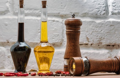 Salt, pepper and a portion of vinegar & oil