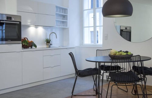 This Deluxe Apartment offers you a dining area, seating area, large wardrobe, fully equipped kitchen as well as water boiler and a Nespresso machine with including Julius Meindl Coffee.