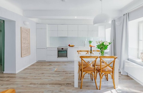 The deluxe apartment with two bedrooms, one bathroom and a living room as community room with kitchen from Smile Apartments is welcoming you to the historical and world-famous old town of Dürnstein.