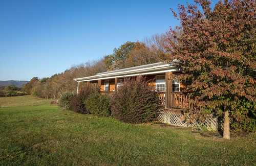 The largest of our cabin suites, the Lodge sleeps up to 8 guests with three bedrooms and two full baths, including a master with a jacuzzi tub. It features an open-concept living area, fully equipped kitchen, dining table for six, flat-screen cable TV, Wi-Fi, and is the only unit with a washer and dryer. Enjoy mountain views from the covered wrap-around porch with rocking chairs. Linens, kitchenware, firewood, and propane are provided. Guests also have access to a shared outdoor area with fire pits and a gas grill.