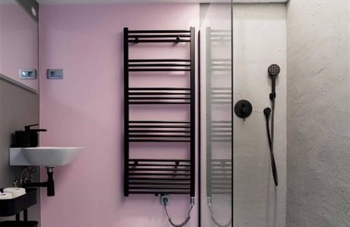 The bathroom has a spacious shower cabin with a high modern glass wall. The entire apartment has attractive and modern furnishings and bright colors that blend nicely with calm tones. With its beautiful and harmonious design, it always delights guests.